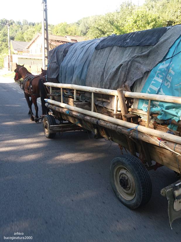 Din Stoenesti este numai coborare… prin Cotenesti, Badeni, Cetateni (aici ne oprim pentru cafeaua de dimineata si alte cumparaturi). Undeva spre Laicai-Malul cu Flori depasim o caruta interesanta: