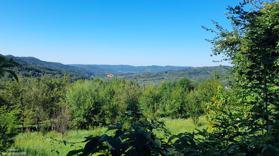 In zare se vede satul Brebu, pe ultima culme golasa este crucea de la Runcu, cu sageata rosie drumul care urca spre acest sat.