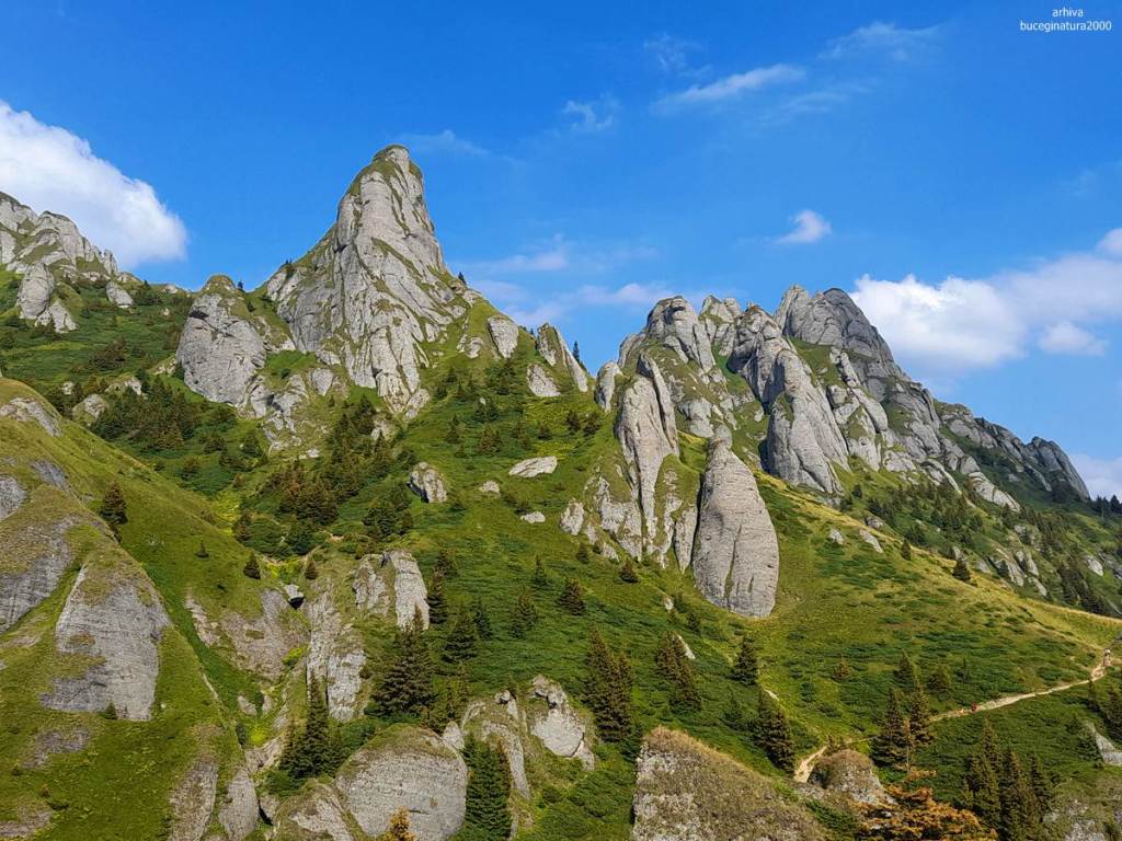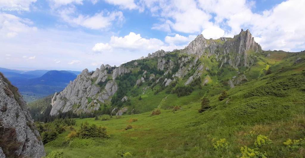 Si de aici incepe traseul simplu, o bucla superba pe timp frumos. Ma refer la traseul din titlu, mergi pe o parte, te intorci pe alta. Este aglomeratie, dar nu „bara la bara” ca pe Bucegi, intre Piatra Arsa si Babele.