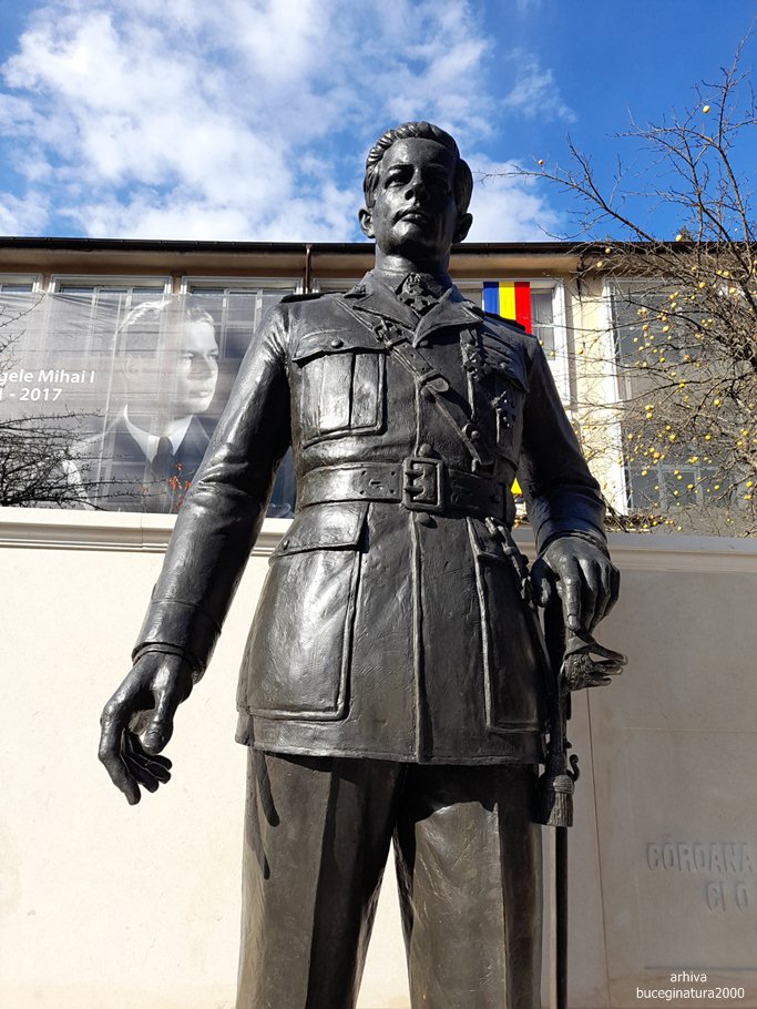 Spre Sinaia ma gandesc sa fac niste poze cu cea mai recenta statuie din Valea Prahovei, a Regelui Mihai I: