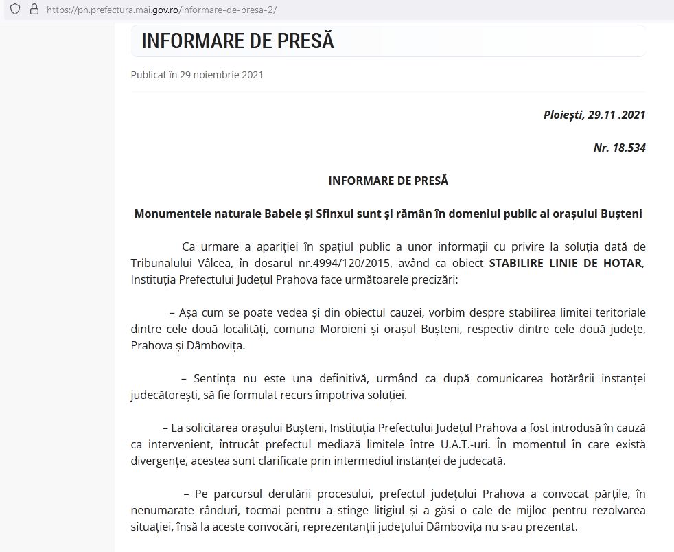 Adica, instanta, in „nebunia” acesteia, poate ca nu a auzit de prefectul Prahovei, care este peste orice lege :))) Bine, d-l Cristian Ionescu Prefect, nu semneaza, nu isi asuma, ca sa poata da vina pe cel care a redactat comunicatul. Ca un fel de Zorro-nici barbat, nici femeie…