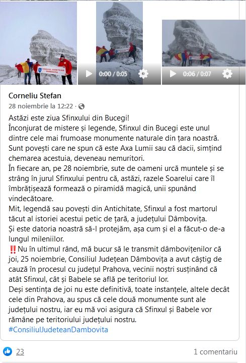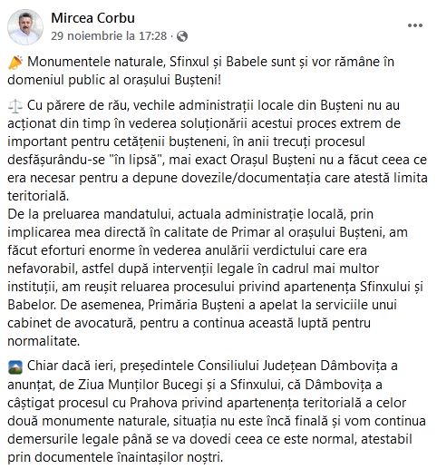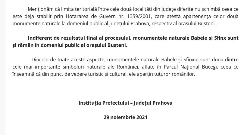 Sa vedem, mai exact, ce spun taberele implicate in acest conflict pe terenuri, nu pe altceva… Sfinxul si Babele sunt „banii de pe pieptul mortului” :))), importante sunt terenurile.