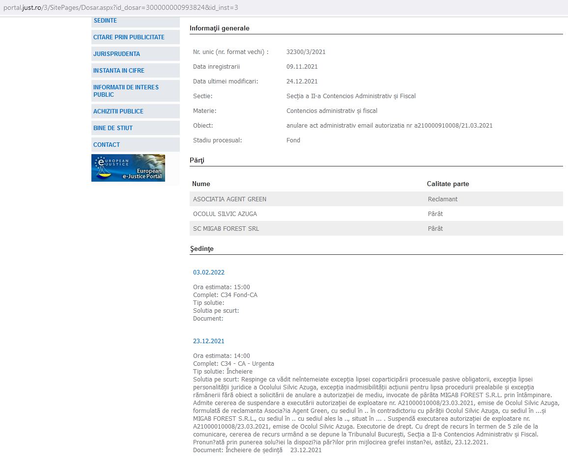 Ar mai fi un proces interesant intre Agent Green si Ocolul Silvic Azuga plus un exploatator silvic. Toata lumea stie ca toti sunt la gramada in aceasta lume a lemnului. Cred ca si daca da dreptate instanta Agent Green-ului, lemnul a fost scos de mult.