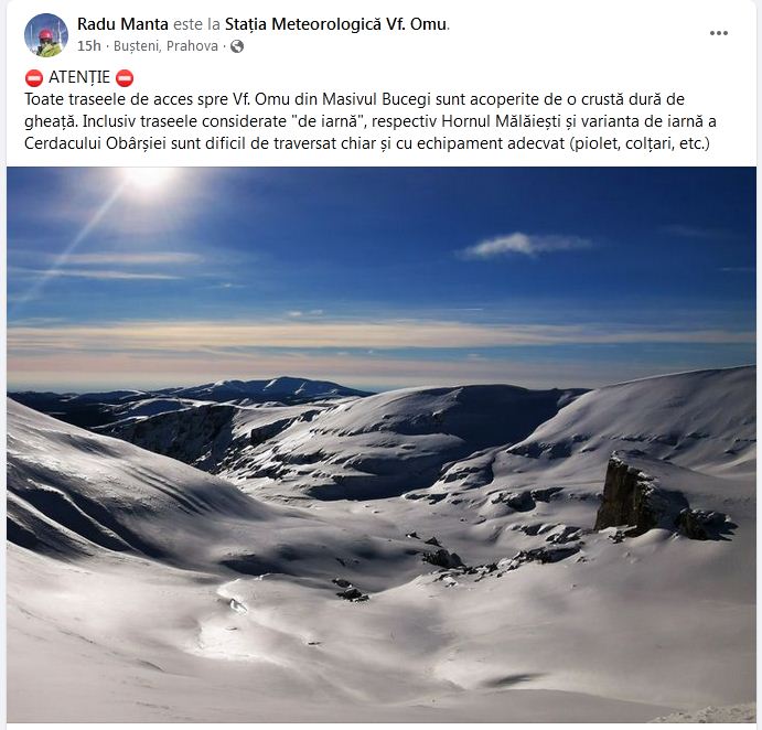 Foarte importanta, fiindca vine week-end-ul este atentionarea celor care locuiesc in varful Bucegilor.