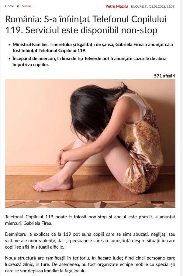 Am vazut ca a aparut o linie telefonica unde copiii pot suna, in anumite situatii: