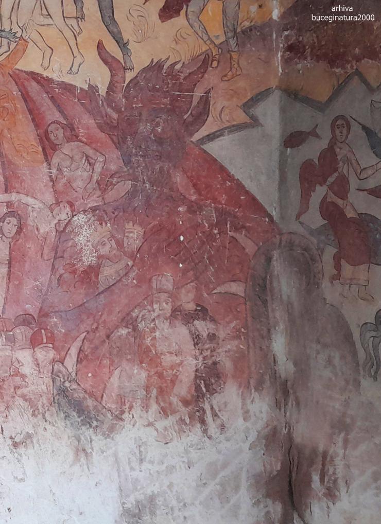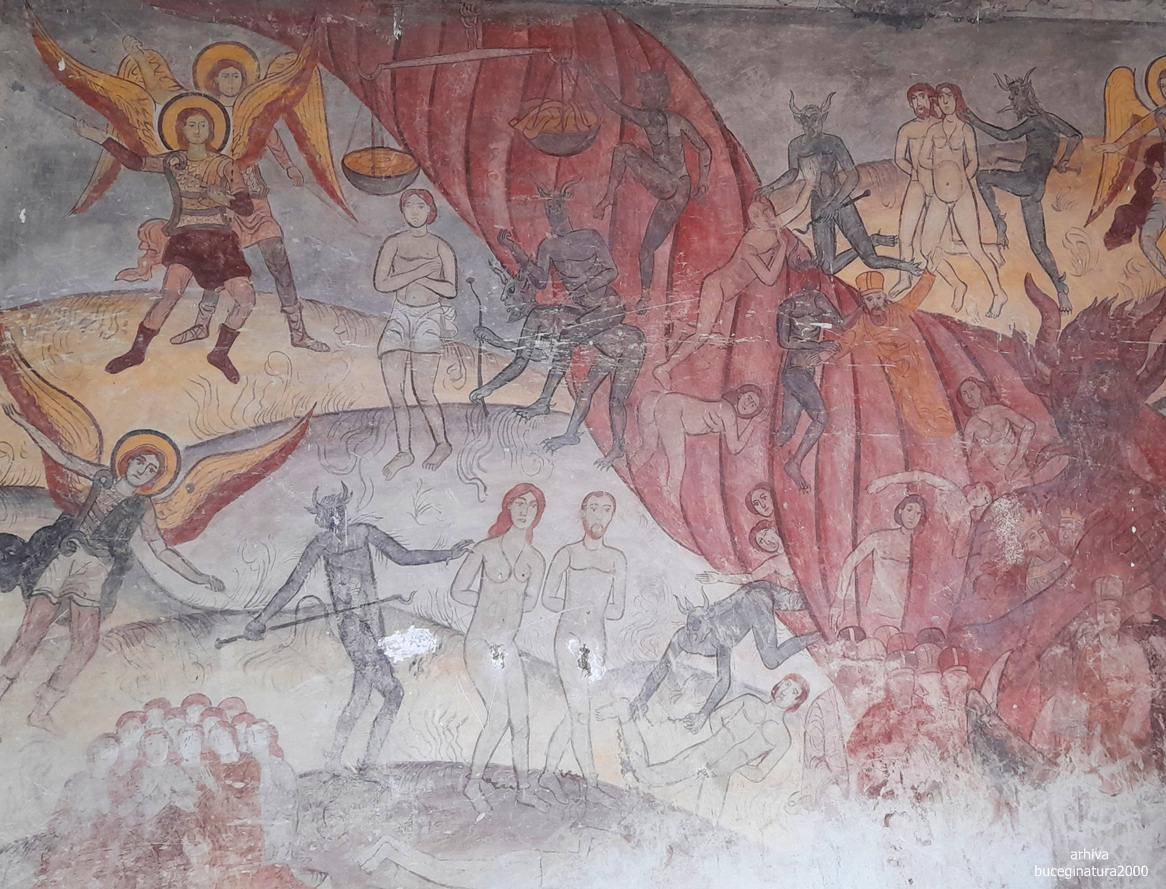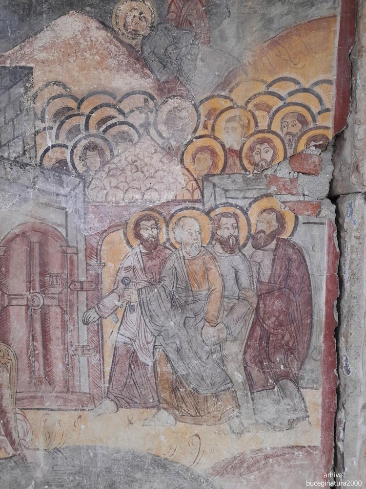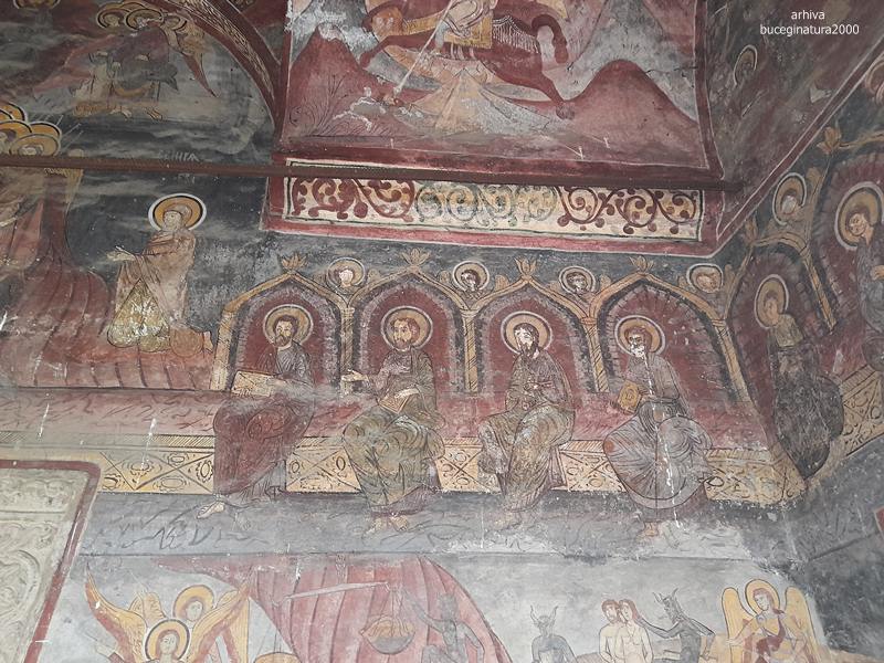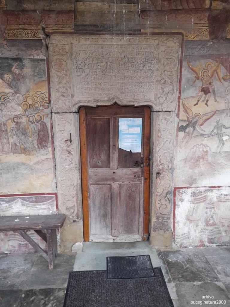 Intru si in biserica, vad pe pereti, in chirilica, numele ctitorilor: Constantin Lipoveanu si Stanca Lipoveanu si cam atat :) A, sunt si ei zugraviti si mai erau niste boieri, ceva, plus o reprezentare interesanta a Sf.Mc. Ecaterina… iar intre pronaos si naos sunt stalpi…