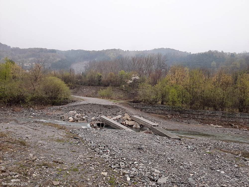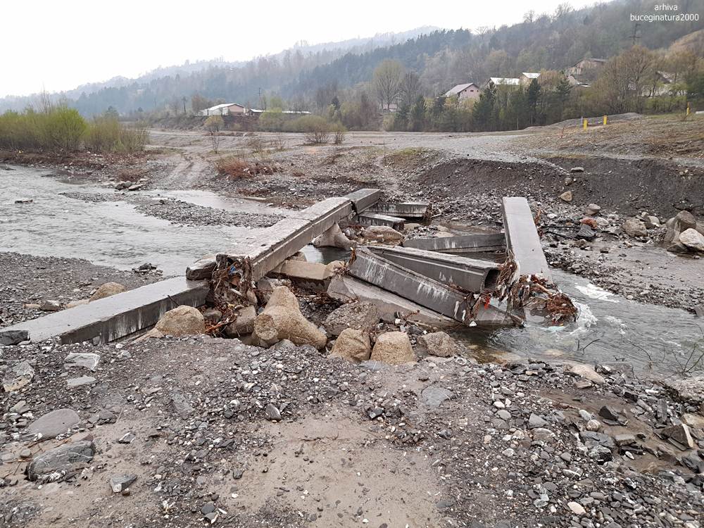 Alt unghiCe a ramas din podul de peste Prahova cum veneai dinspre Ghiosesti spre fosta scoala din Posada.Cu piciorul sau cu bicicleta poti trece. Cum se vede in stanga, sunt masini care o mai iau prin apa. Nu orice masina…Cu ceva efort, grinzile din beton pot fi aranjate la loc.