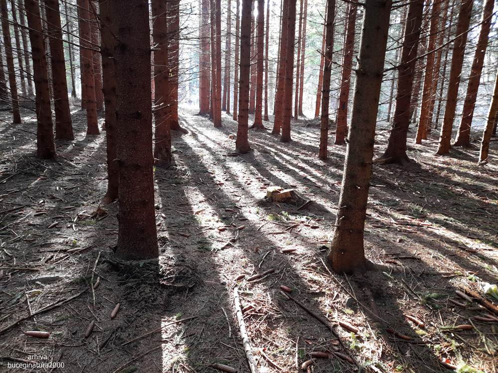 Sa facem poze intr-o padure „sinistra” :) OK!Rasarit printre arbori de molid