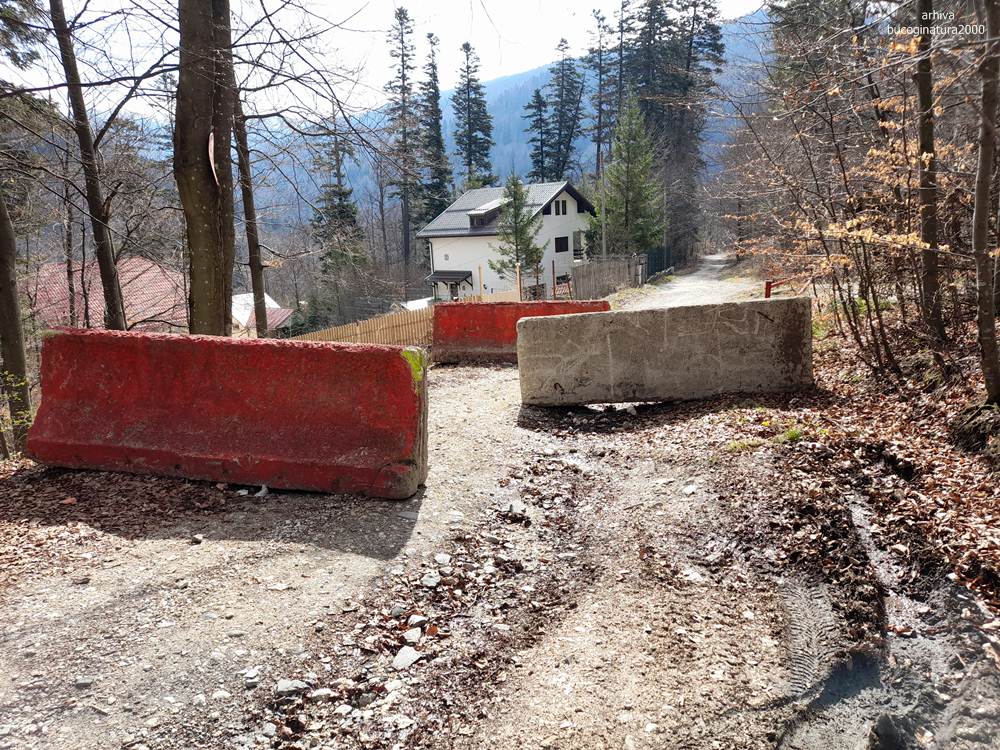 Spre PelesLa intrare pe drumul care leaga cartierul Oppler din Sinaia de Poiana Tapului.Cred ca blocajul este ca sa nu mai iasa masinile cu lemne, sa nu strice asfaltul.