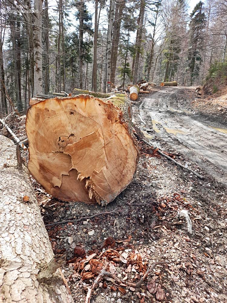 Era interesanta si o poza cu acel panou cu „taieri accidentale”, fiindca pozele 16/17 (de jos in sus) arata clar graba/chinul taietorului/hotului… Sunt taieturi in toate directiile pe acele trunchiuri… Mistocareala ca in poza 11 (de jos in sus) se practica in multe parchete din tara, pentru a deruta eventualii aparatori ai padurii. De fapt un mare erou/martir, Ioan Ianolide, prevestea ca :”Nicio forta oculta din afara nu poate ingenunchea RO mai mult decat o pot face fortele INCULTE din interiorul ei „.Poza cu melcul este emblematica, fiindca vrea sa arate viteza de reactie a „entitatilor” abilitate sa diminuieze/repare SEMNELE lasate de BLANDA si INGADUITOAREA NATURA .
