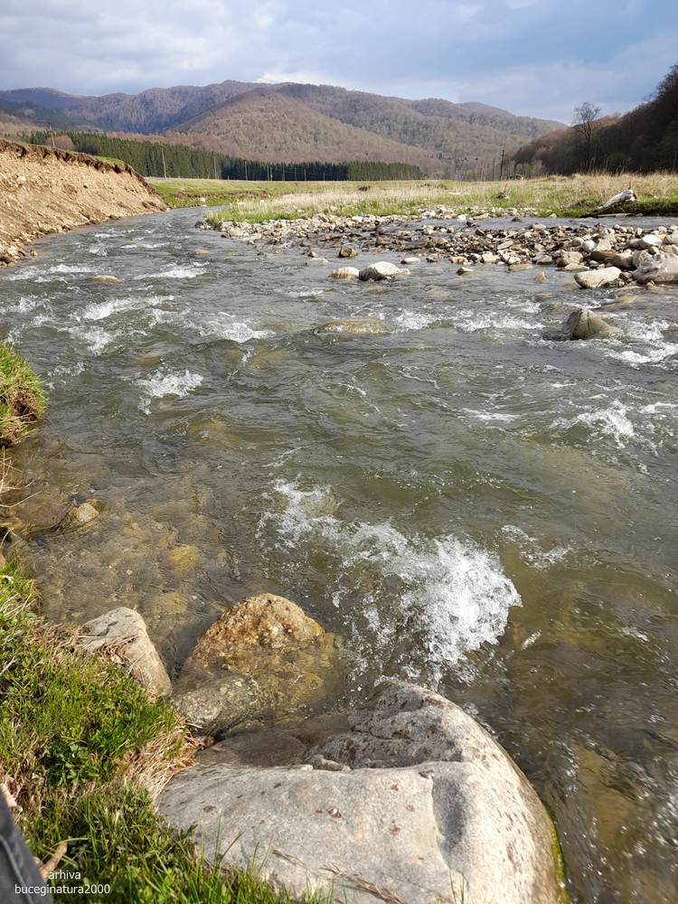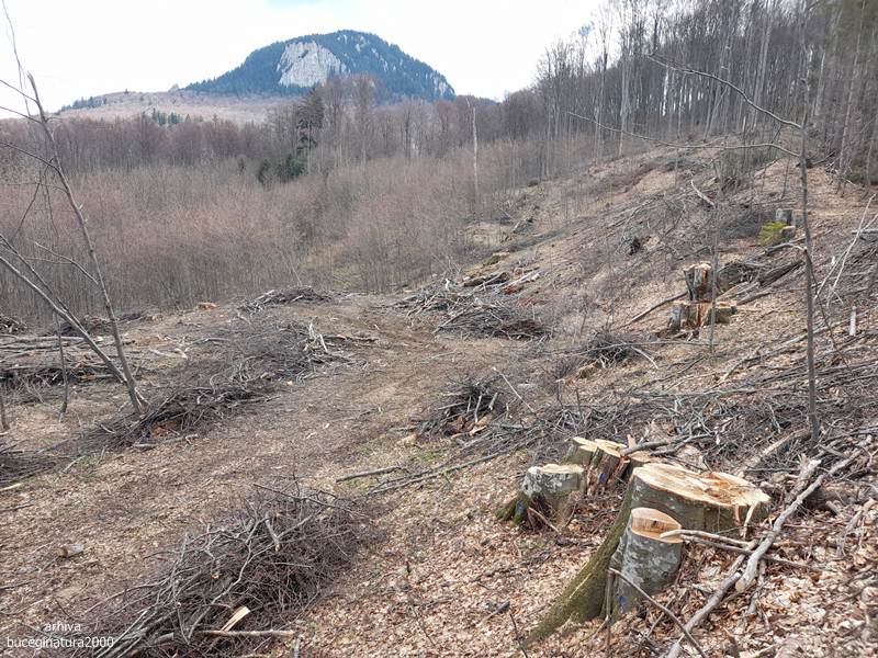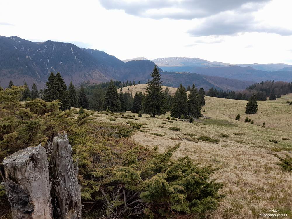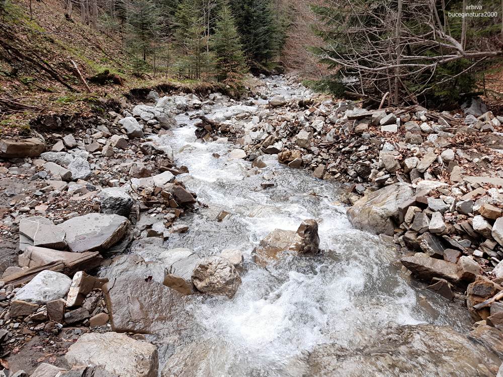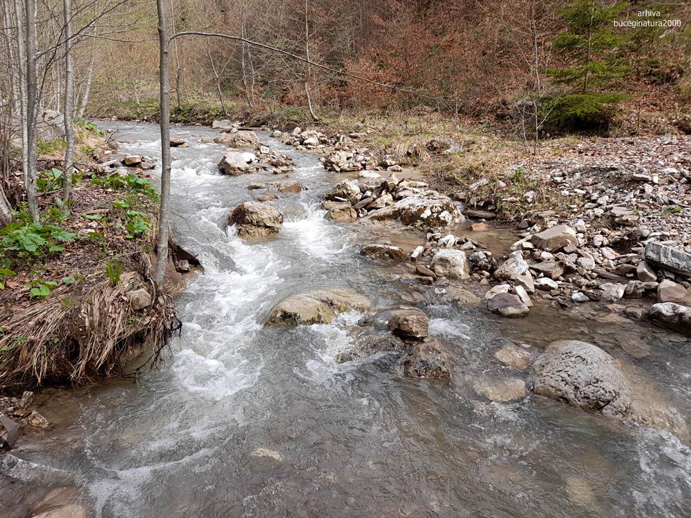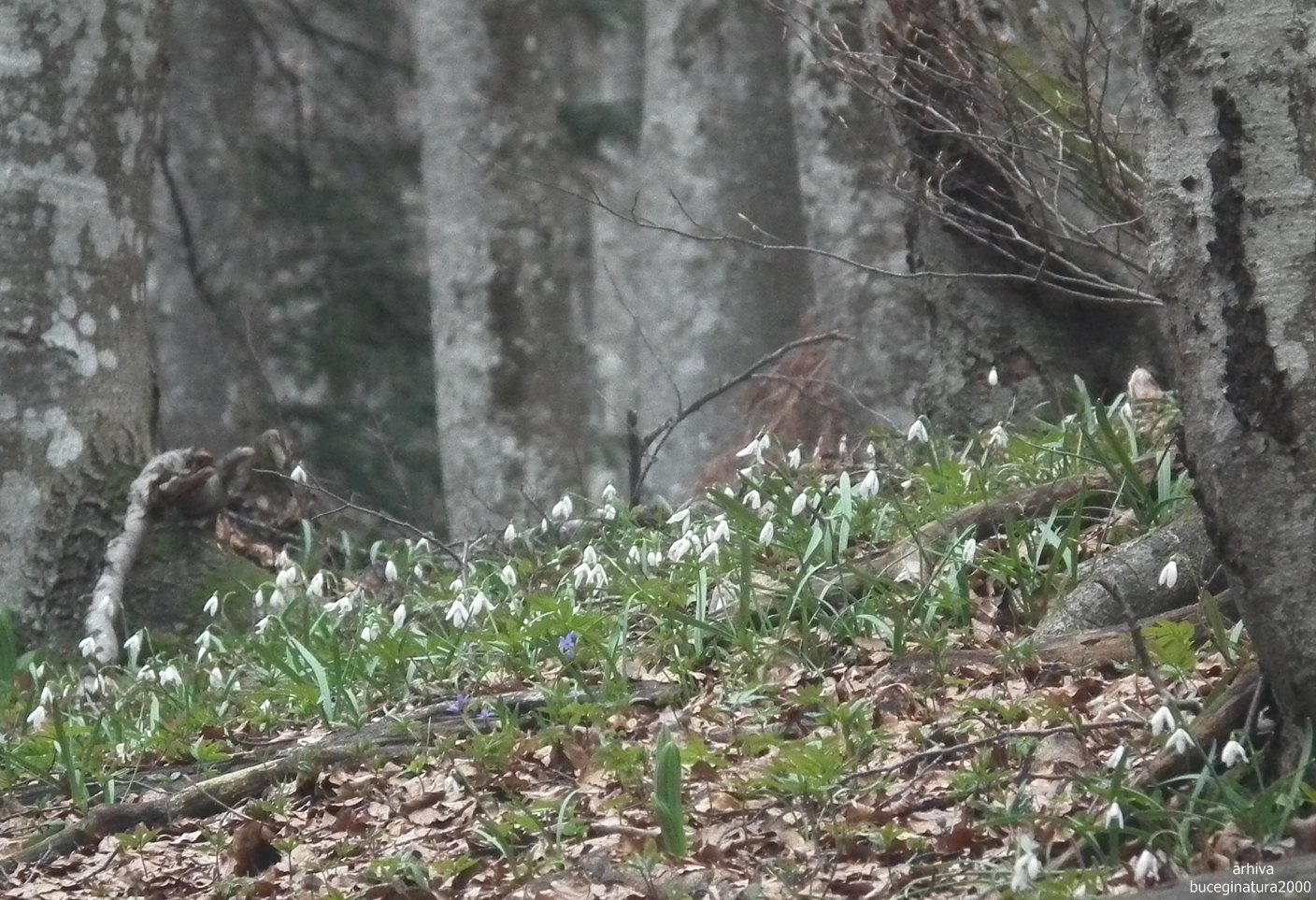 In stanga, majoritatea arbustilor nu prea au coaja, caprioarele au mancat-o in timpul iernii. Iar pe jos, pe unde se vede verde, trebuie un pic de atentie. Cei care au curatat traseul au taiat arbustii de la 15-20 cm de sol si nu vezi cioatele, te mai si impiedici la un mod trist :))