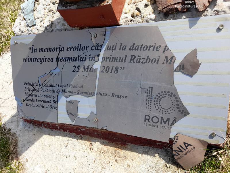 A fost sparta placa pe care scria un mesaj frumos… era si foarte subtire, cativa milimetri. Presupun eu ca a fost sparta pentru ca erau bucati risipite dar poate exista posibilitatea sa se fi spart de la ger, la cat de subtire este.