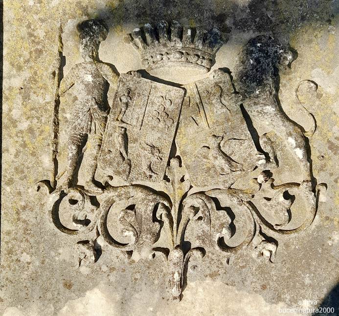 In dreapta, blazonul Florestilor, alaturat cu un alt blazon de la care preia coroana mai tarziu.