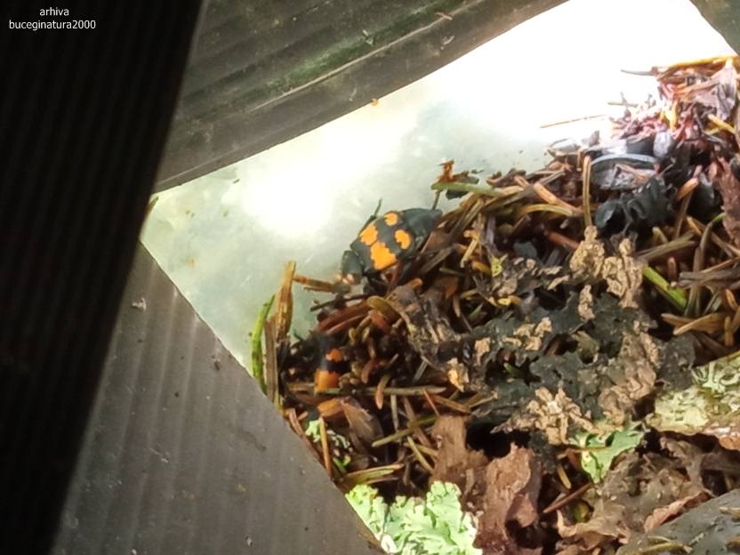 Nicrophorus vespilloides… un gandac necrofag adica acesta umbla sa ingroape rozatoare mici moarte, din care se hraneste el, altii si familia :)