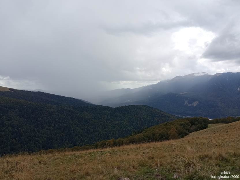 Asezam scaunele si privim spectacolul ploii peste Sinaia.