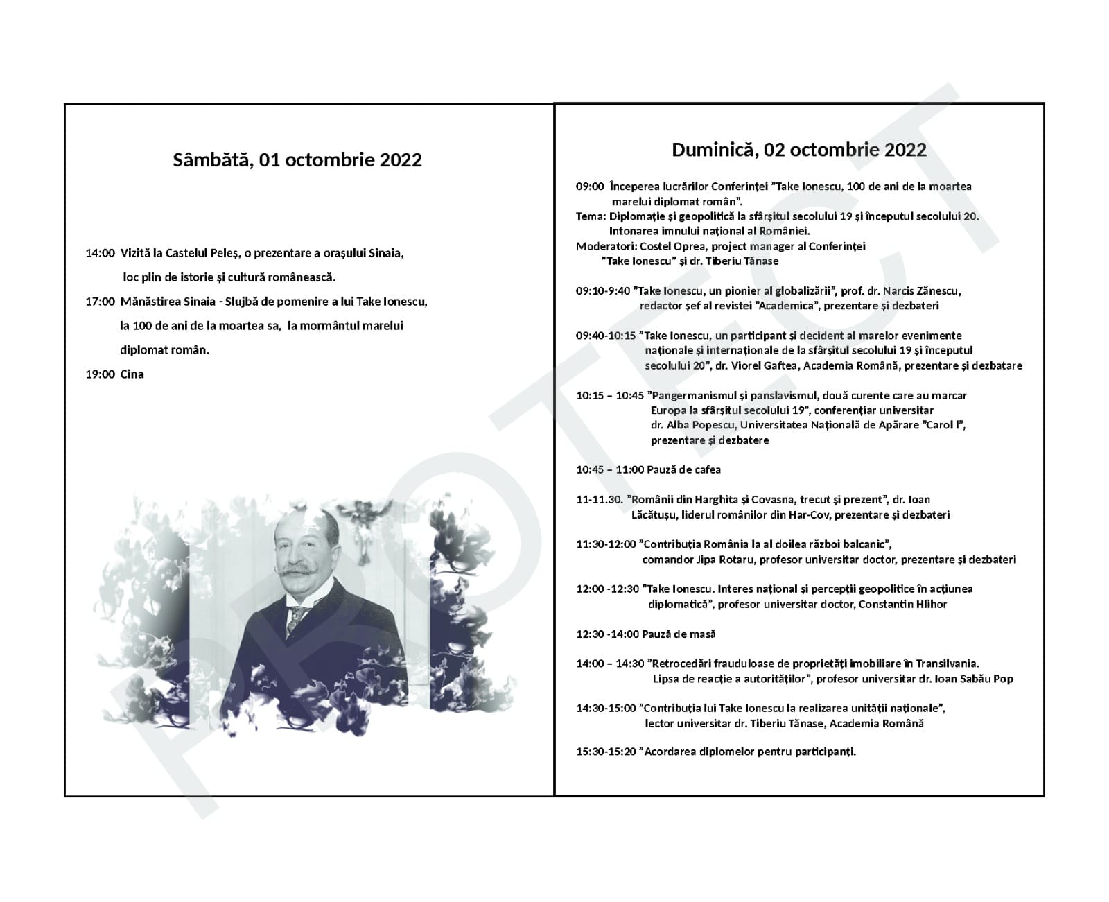 Astazi a fost ceva foarte interesant la Manastirea Sinaia, parastas la mormantul lui Take Ionescu, mai e si maine ceva…