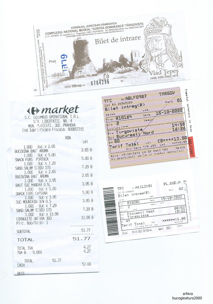 Bine, mai sunt si bilete si bonuri, am postat sa fie asa ca niste amintiri :)) In unele muzee iti pot taia 2 bilete de 6 lei ca sa fie 12 lei sau 2 de 4 lei daca biletul de adult este de 8 lei.