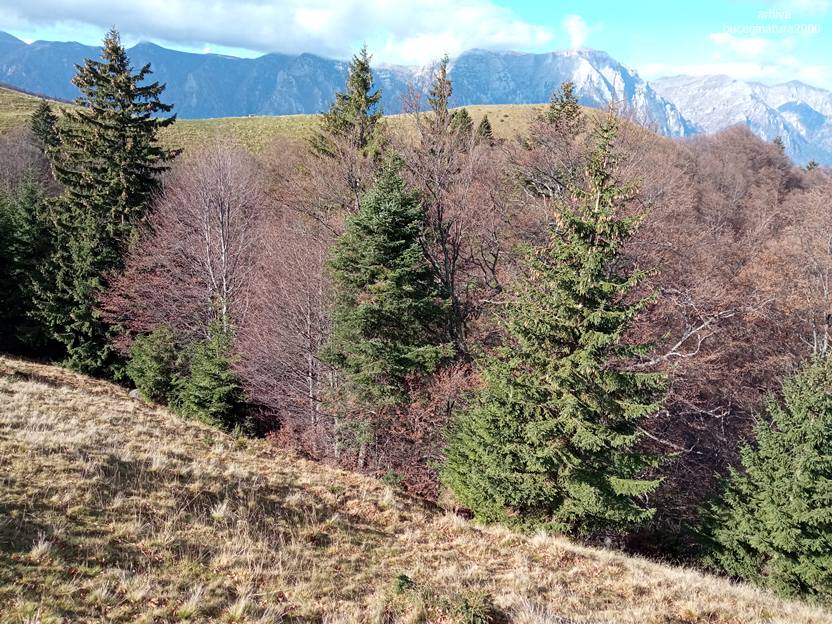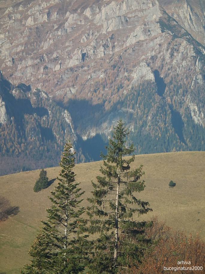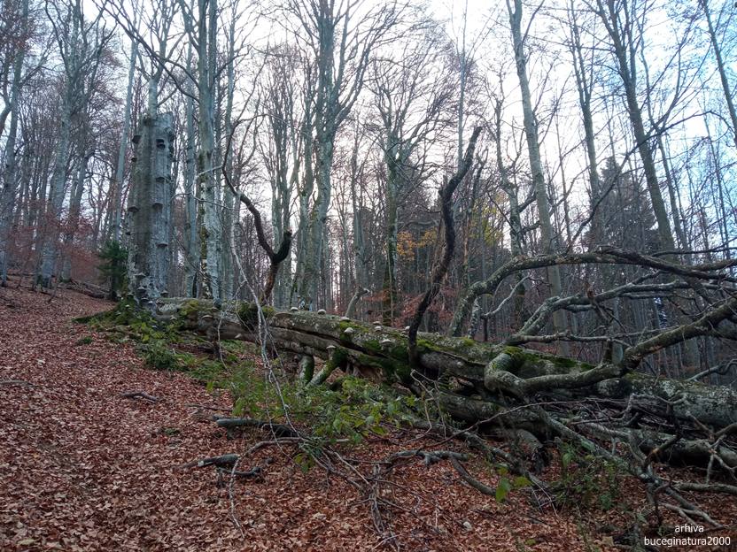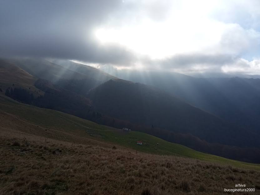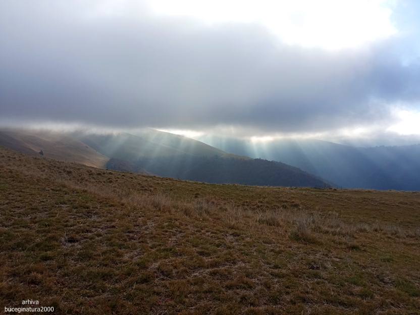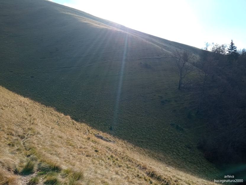 Jir in nestire… si animale dupa acesta la fel. Deci pe la liziere jirul cade pe iarba si ursii si mistretii il aduna mai usor. Ne-am dat seama ca deranjam fauna, ca e liniste, ca e soare, ca e jir, ca zgomote de fuga in padure… si cam de pe la stana de la valea Fetei am schimbat traseul spre drumul de creasta.
