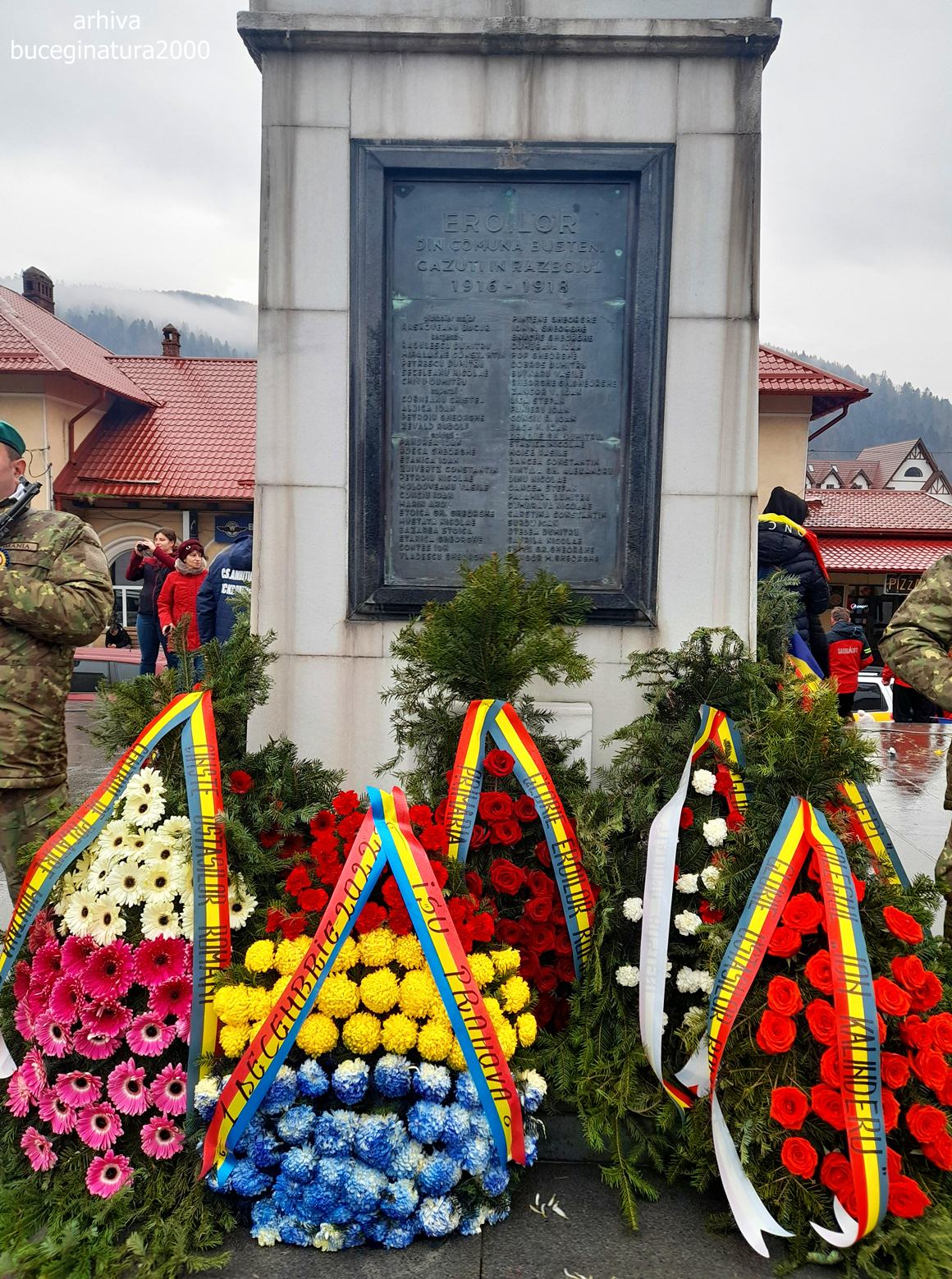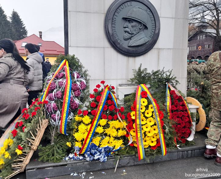 Coroane pe toate partile monumentului… lipsit de placile originale. Inlocuite la restaurare cu replici.