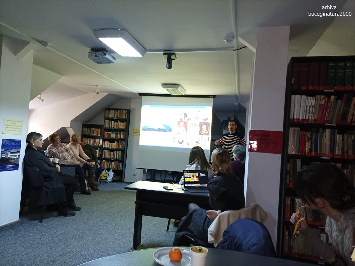 Ca organizare, in acest spatiu din imagine, au intrat clasele a 8a si a 12a, ani terminali, iar celelalte clase au urmarit din clase, online, evenimentul. Am invitat anterior elevii care au ceva de spus, sa se pregateasca pentru a se prezenta. Si s-au prezentat 4 elevi de la clasa a8a si 3 elevi de la clasa a12a. Ca ironie doar, toti sunt si in Cercul de Istorie.