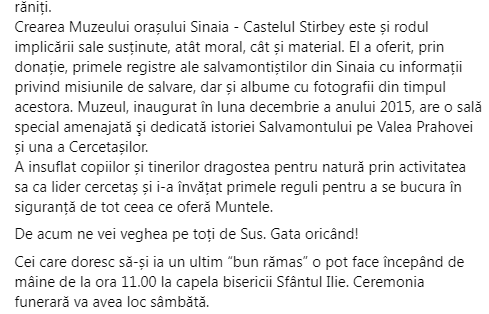 Un omagiu destul de scurt… si Dumnezeu sa-l odihneasca… pe acest om care parea casatorit pentru totdeauna cu muntele. A fost unul dintre membrii fondatori ai Salvamontului sinaian…si cate altele.