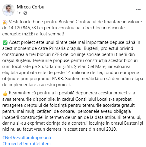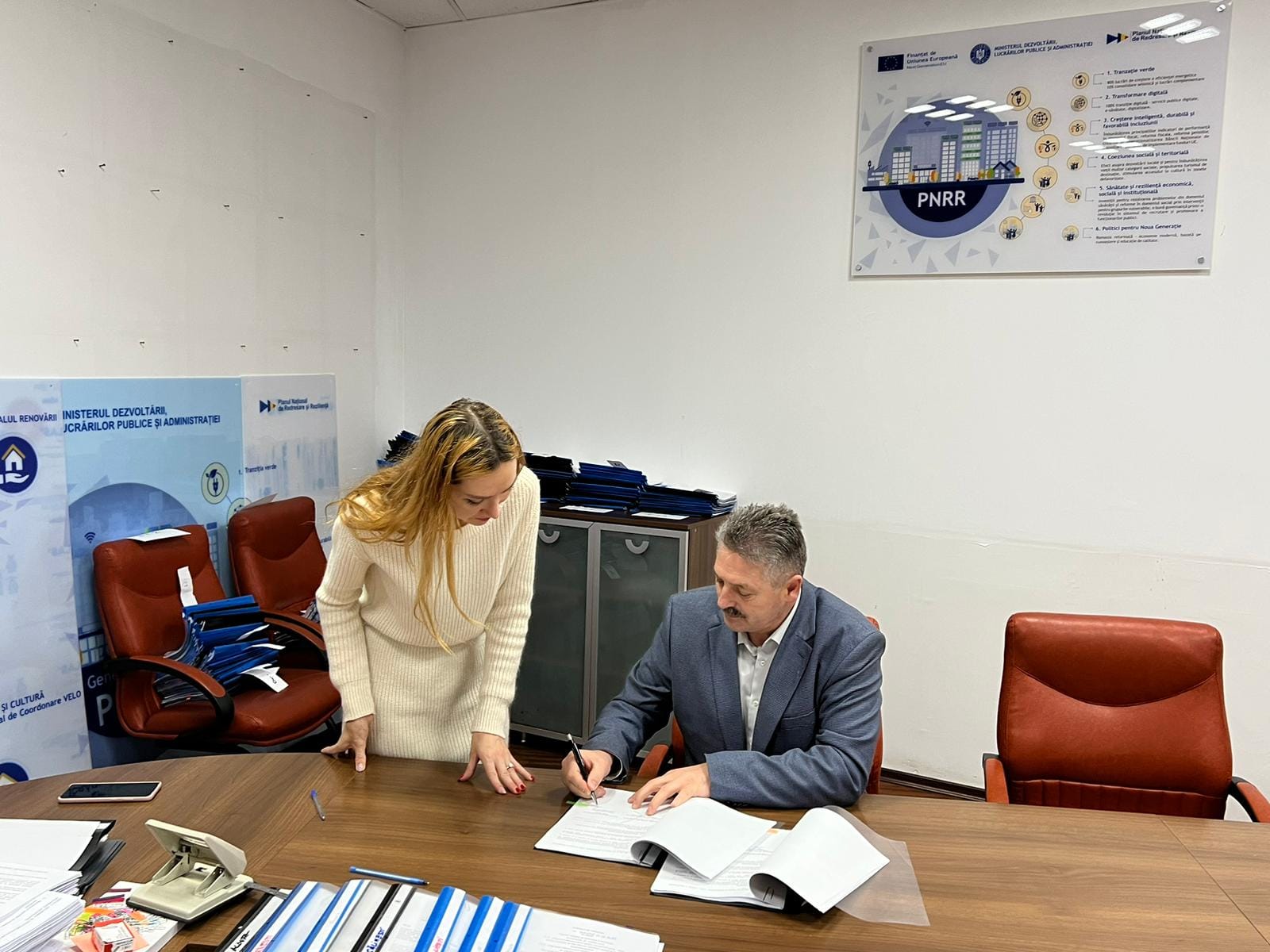 Imaginile de mai sus provin de pe contul de Facebook al primarului si surprind momentul semnarii contractului de finantare pentru locuinte.