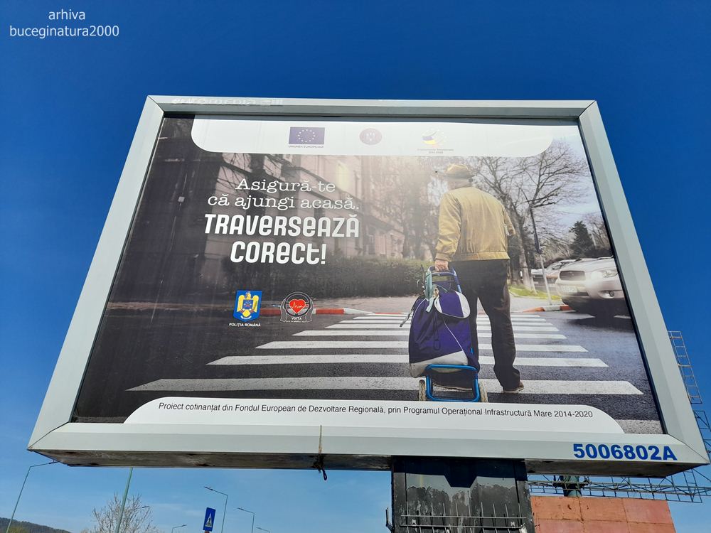 Si la Busteni, intr-un loc unde multi se angajeaza in traversare neregulamentara, au aparut astfel de afise in ideea de a se salva vieti: