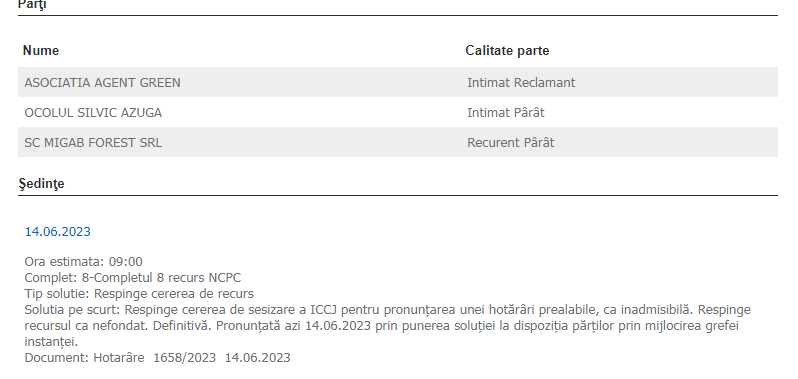 14.06.2023 – instanta decide definitiv in favoarea Agent Green.