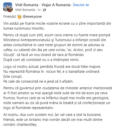 Un personaj de care nu imi aduc aminte sa fii auzit, tot din ignoranta evident si la mine, pe nume Charles Ottley, a creat un logo care in opinia lui ne-ar reprezenta mai bine tara. Tara pe care o considera si a lui. Tara pentru care el face multe de ani de zile si care tara nu are nicio directie turistica. Nu zic de altele ca nu este subiectul articolului.