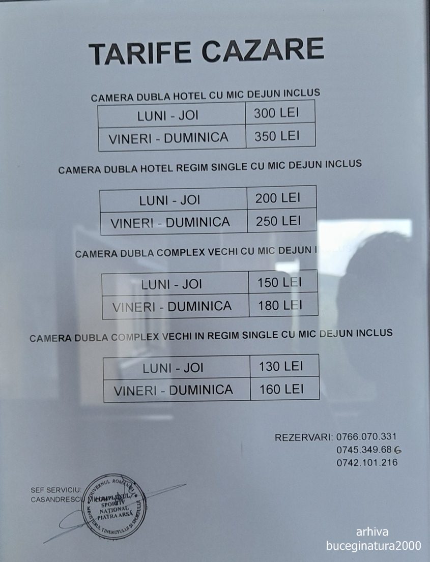 Intram la Piatra Arsa si zic sa pozez si pentru cititori tarifele de cazare: