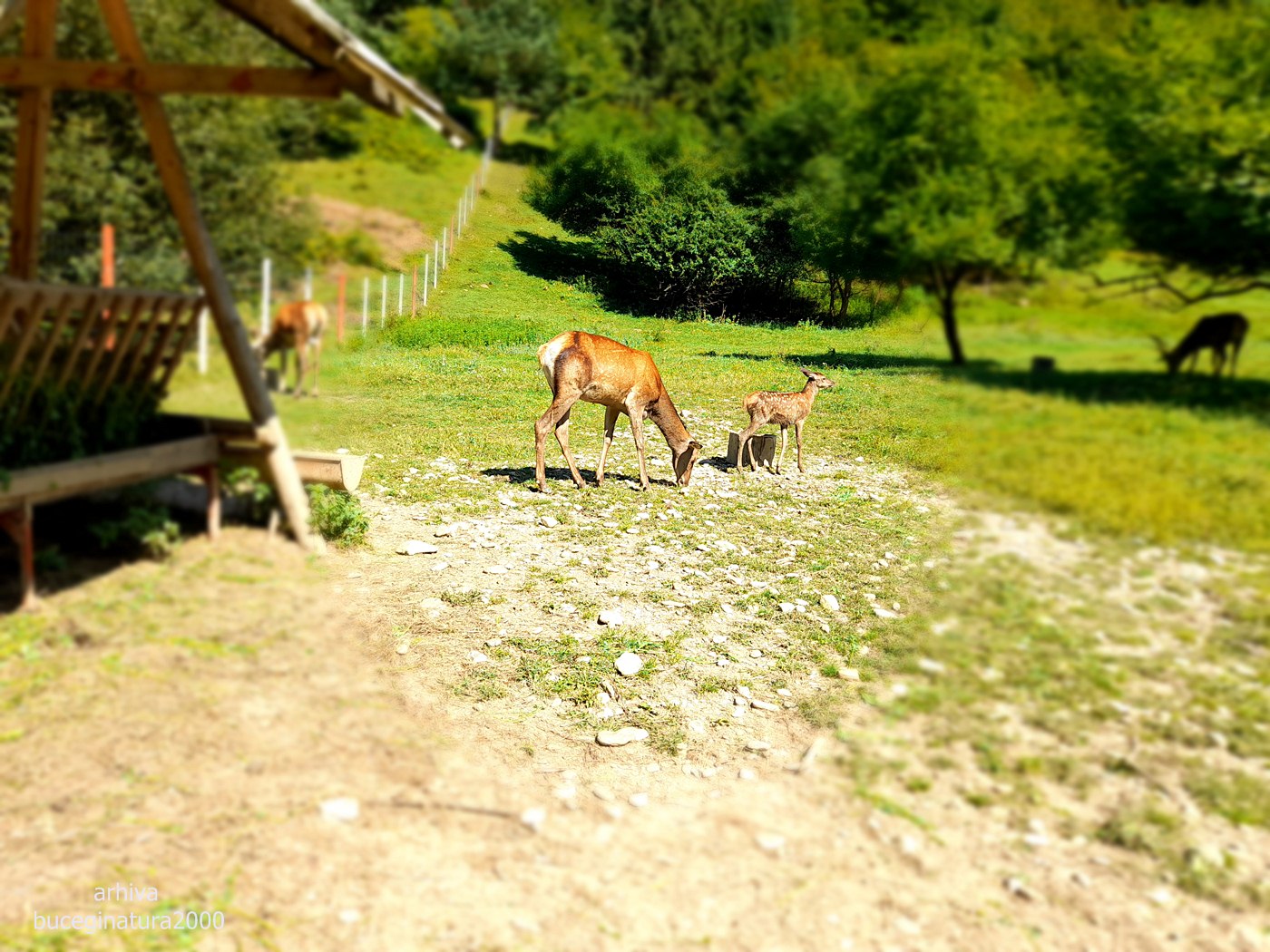 Insa cum coboram, hop si cerbii cu familia pe langa gard.