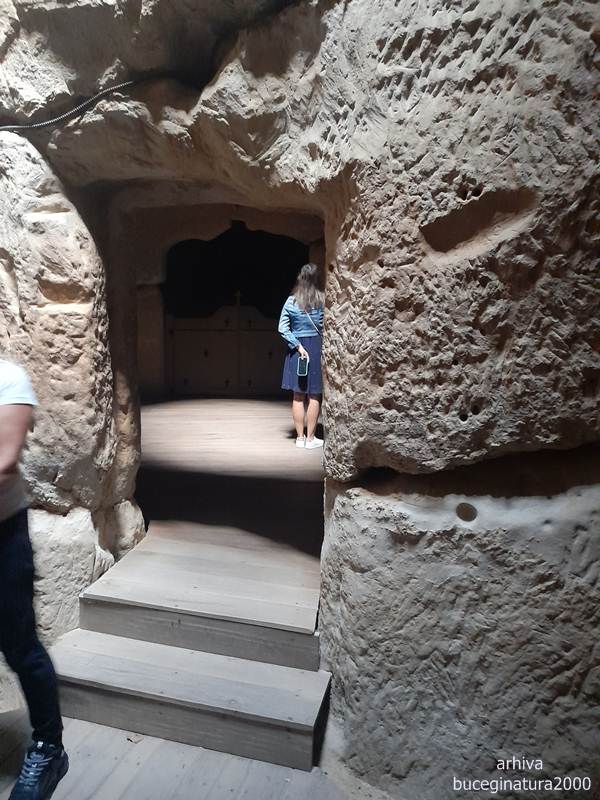 La intrare in intuneric ne-a invitat o doamna iar in interior o alta ghida spunea povestea ortodoxa a locului. Toate bune si frumoase, vorbea chiar adecvat pana a ajuns la sectiunea de raspuns la intrebarile cetatenilor, ca lumea mai intreba diverse.