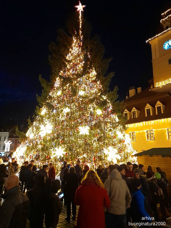 Mii de oameni sa vada un brad si luminite in Piata Sfatului.