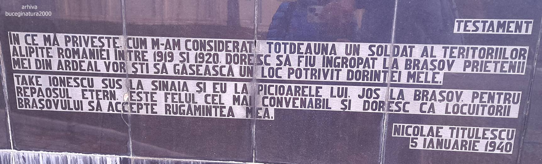 Scrie asa: „Calatorule, aici se afla centrul Romaniei. In aceste locuri s-a zamislit cu voia lui Dumnezeu imnul „Desteapta-te romane”. AS… I.T.Brenciu 08.08.1993″.