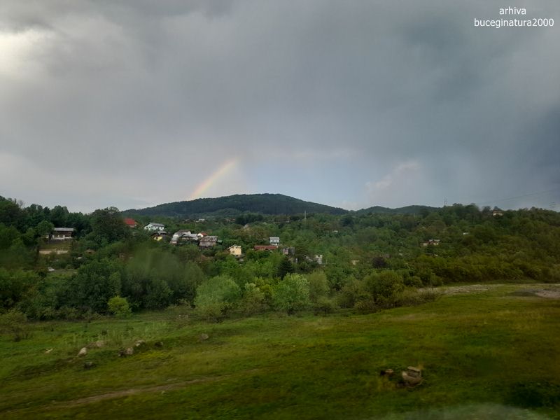 Aproape de gara incepuse ploaia iar din tren am prins pana la Sinaia 2 curcubee mari. Culmea a fost ca la Sinaia se circula dificil din cauza apei pe DN 1 iar in zona Piatra Arsa din Busteni, si mai departe cu Poiana Tapului-Busteni-Azuga-Predeal… nu plouase deloc. Era totul uscat si soare… asta fiind luni.