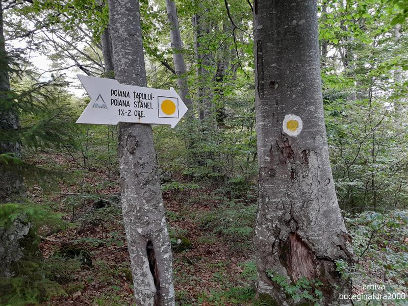 Indicator spre Poiana Tapului si marcaj punct galben.