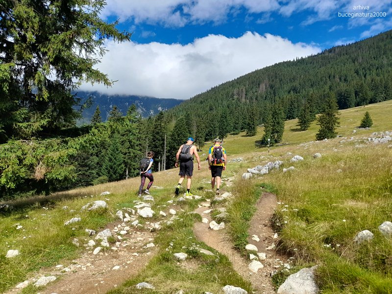 Povestea excursiei incepe cu lasarea masinii pe la Fantana lui Botorog si urcusul pe banda galbena prin Poiana Zanoaga spre cabana Curmatura.