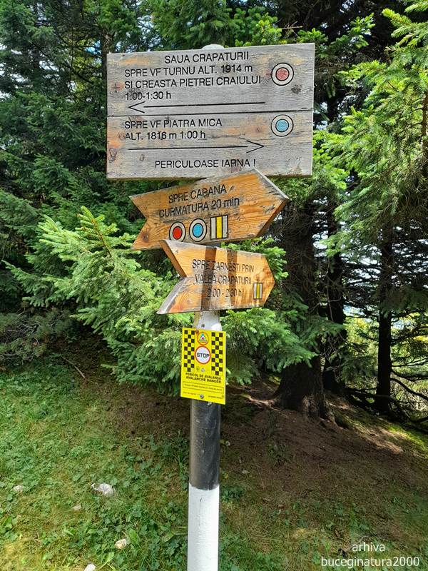 In Saua Crapaturii, o intersectie cu trasee in toate directiile. Alegem spre Vf. Turnul, un traseu dificil.