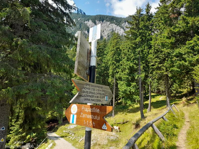 Povestea excursiei incepe cu lasarea masinii pe la Fantana lui Botorog si urcusul pe banda galbena prin Poiana Zanoaga spre cabana Curmatura.