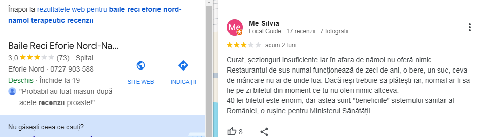 Mai jos, recenzii Google despre aceste spatii economice cu namol. Am luat cateva recenzii negative pentru ca acestea completeaza ideea principala: