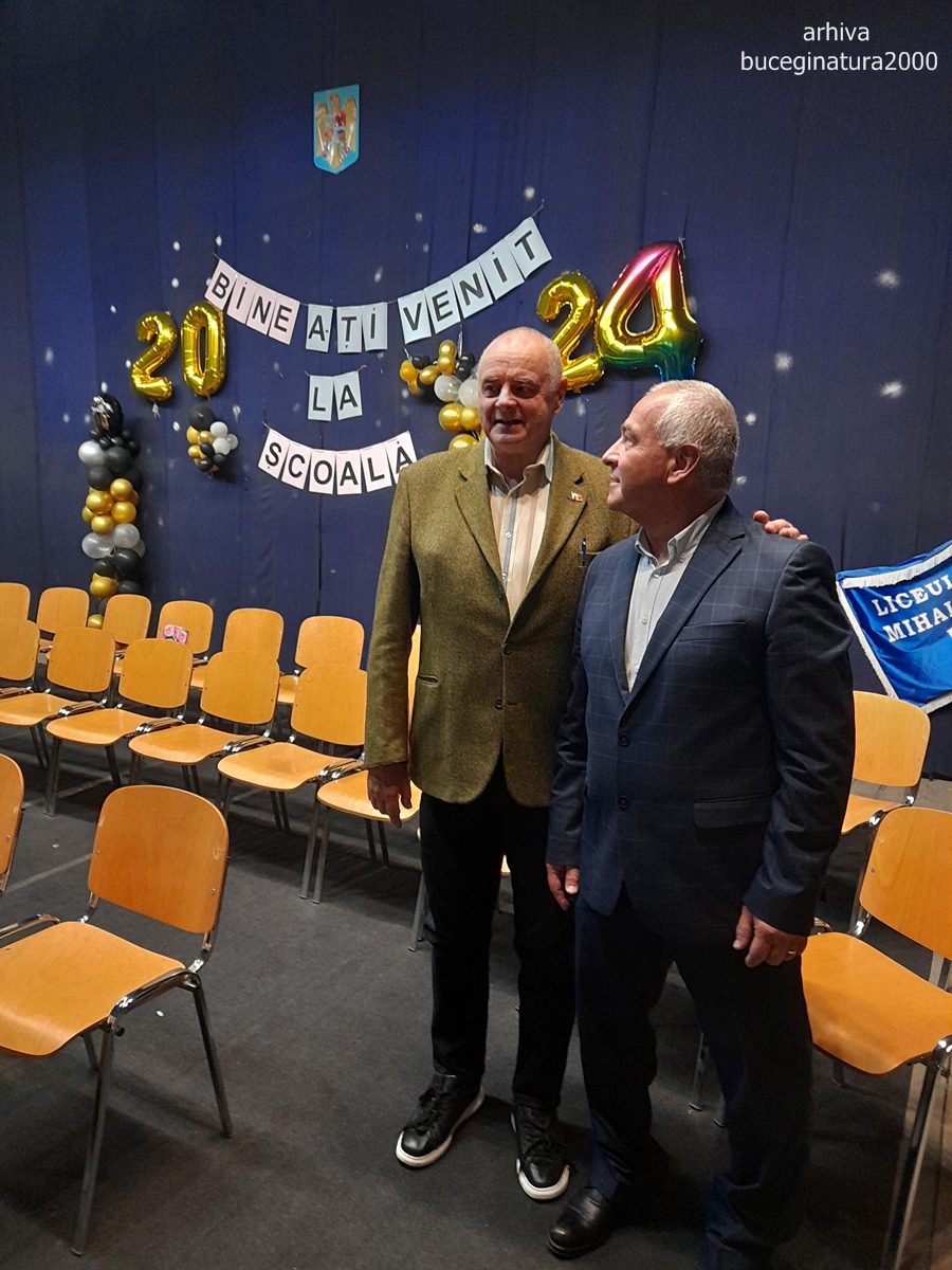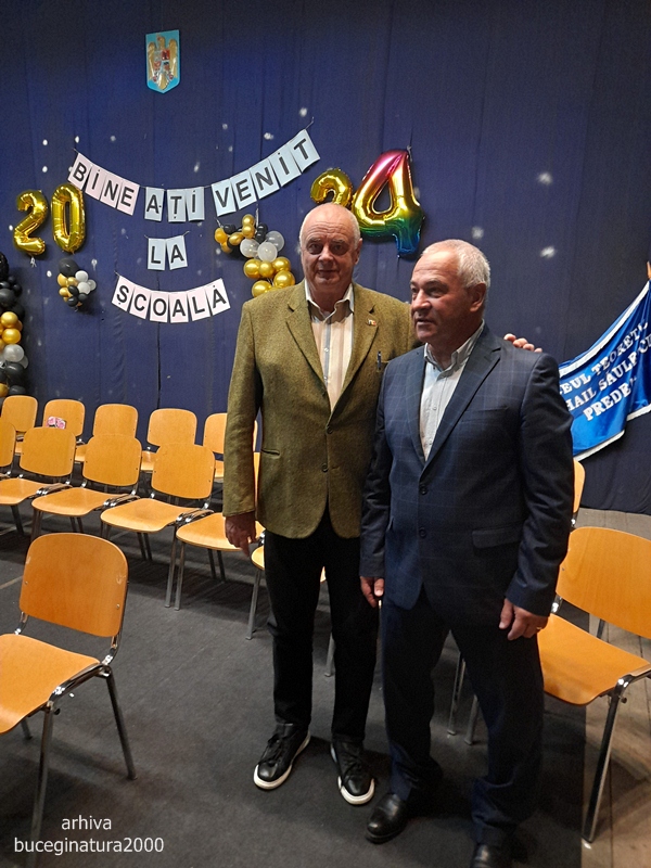 Profesorul Ioan Campan in stanga si profesorul Mihai Olaru in dreapta. Si d-l Olaru are peste 40 de ani activitate didactica.