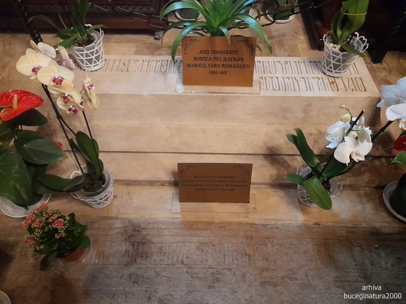 Mormantul lui Mircea cel Batran si mormantul mamei lui Mihai Viteazul, Teodora, calugarita sub numele de Teofana.