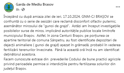 In cele din urma, netul „ne-a lamurit”: „fertilizari cu gunoi pe terenurile agricole din jurul Brasovului si vantul care aduce mirosul…”.