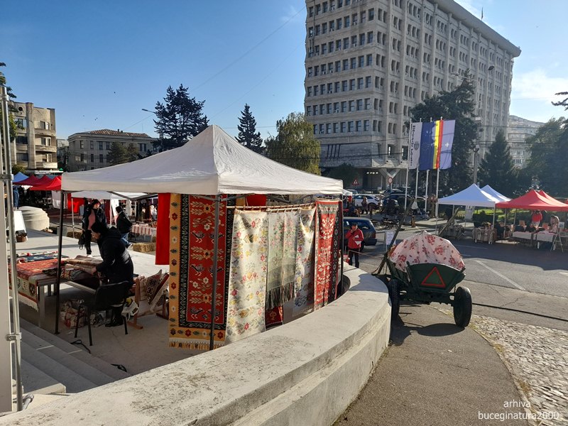 Se faceau diverse pregatiri pentru un targ in fata Palatului Culturii.