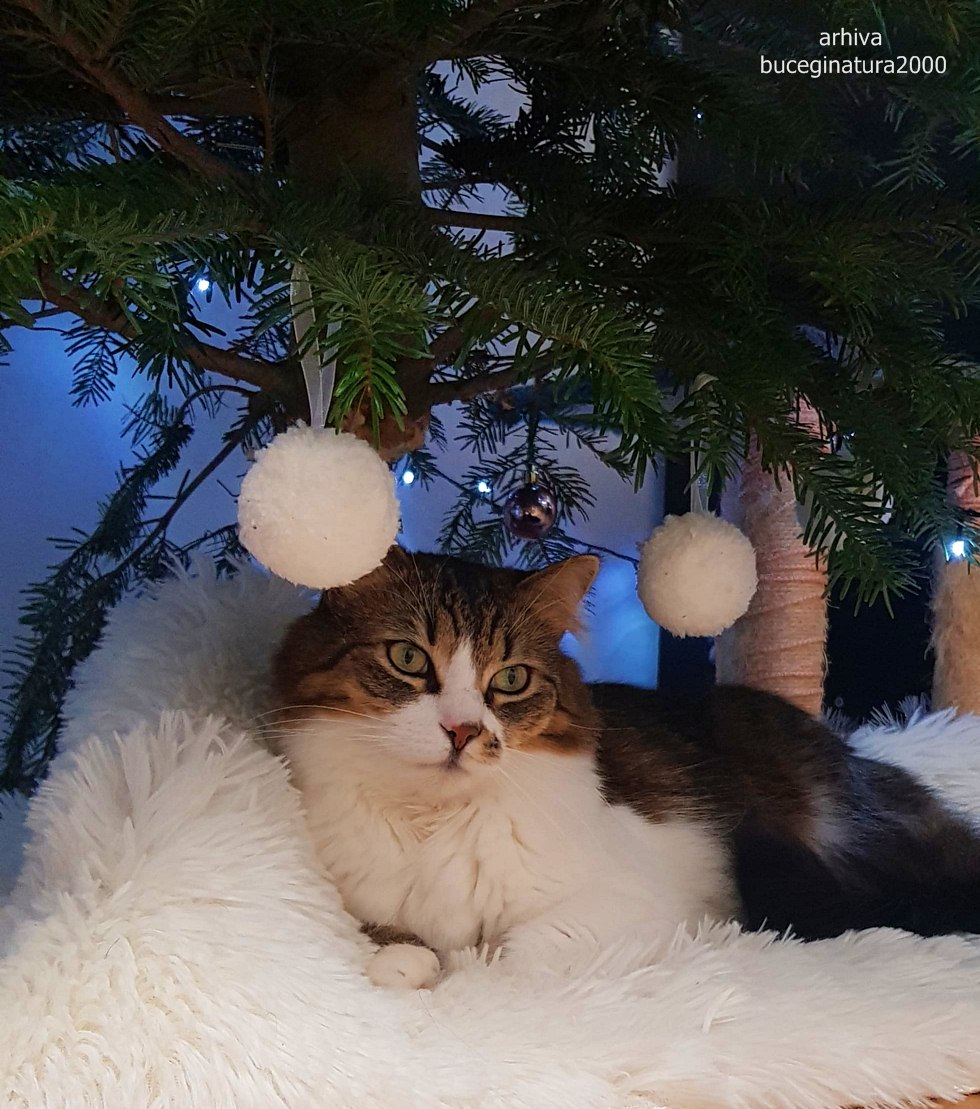 Ce ar fi un brad de Craciun fara o pisica? :)