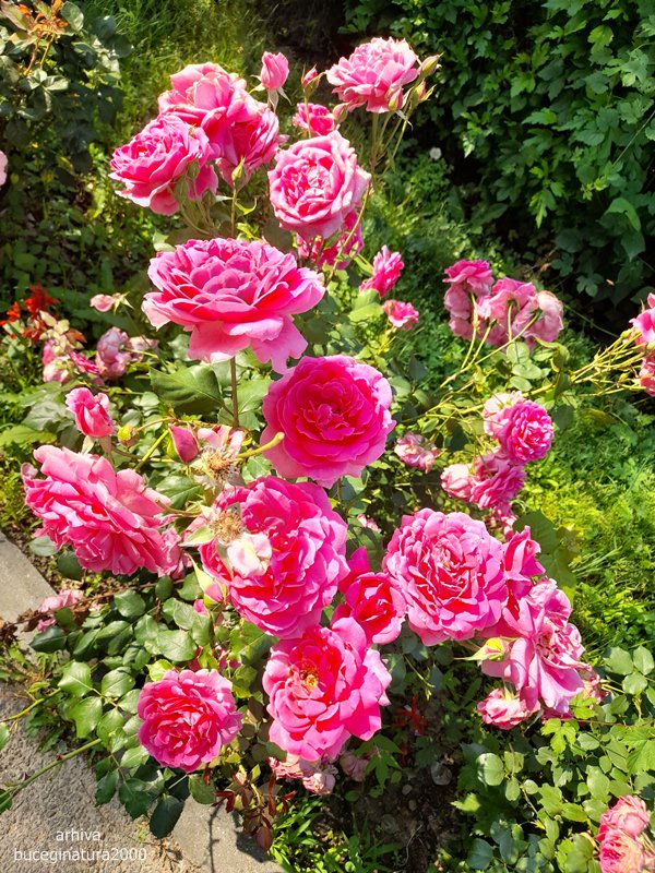 Plin de trandafiri, si pe strada si prin curtile oamenilor.