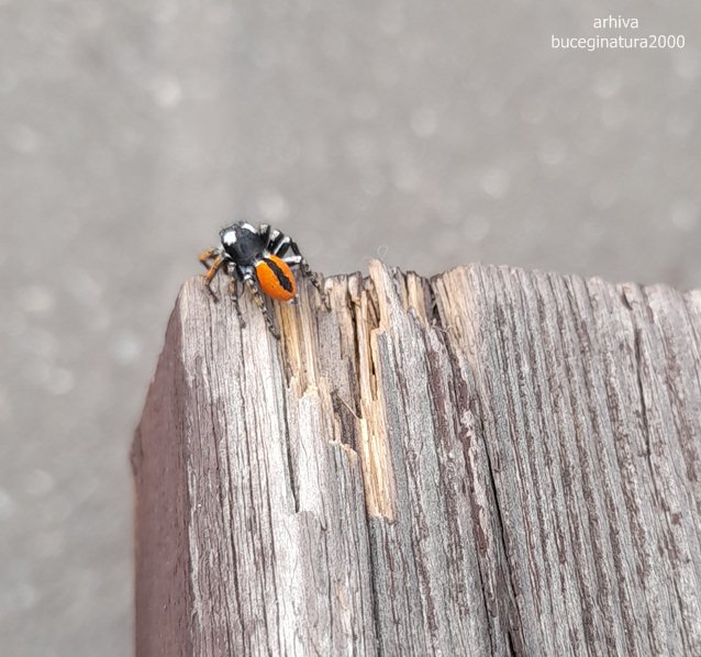 Asteptand pe banca, vad un paianjen chiar frumos.