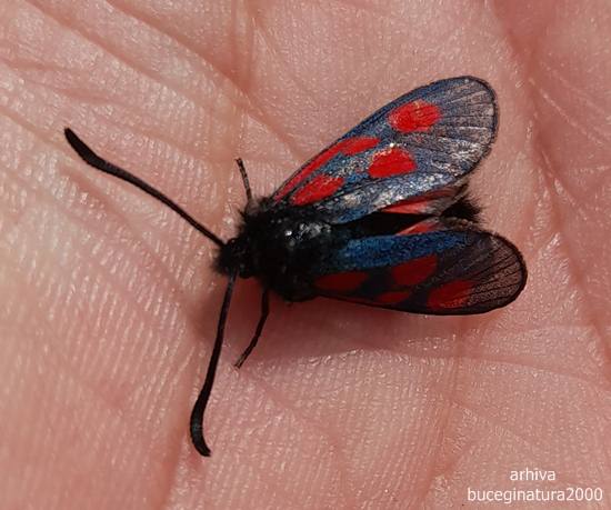 Zygaena filipendulae, un fluture mic pe care il stiam din carti de mai demult.