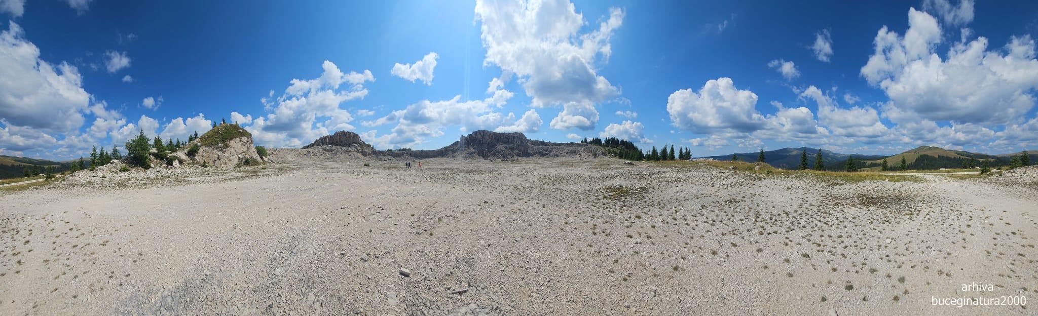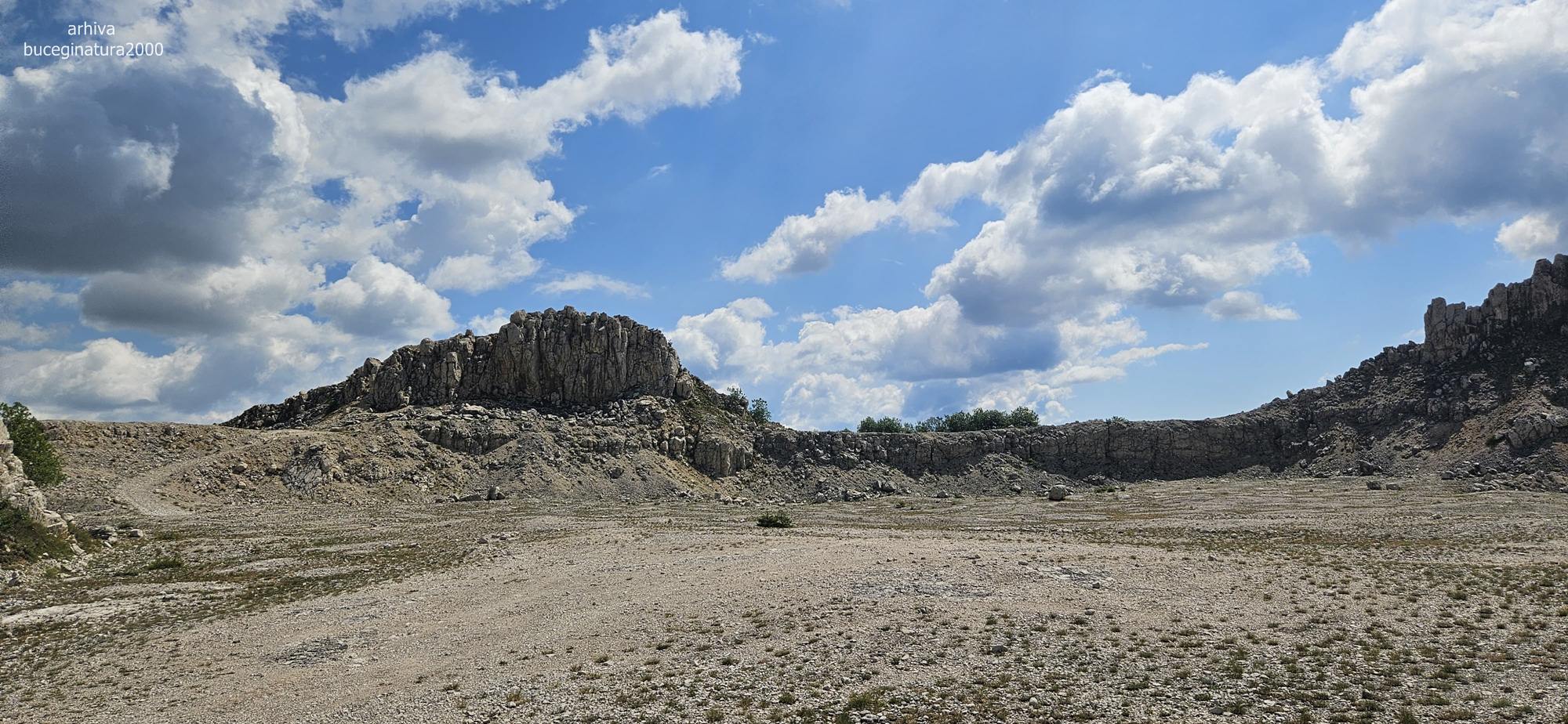 La cariera, sus pe platou. Pe aici ar fi fost inainte de 1980 un rai al florilor si un mic lac.