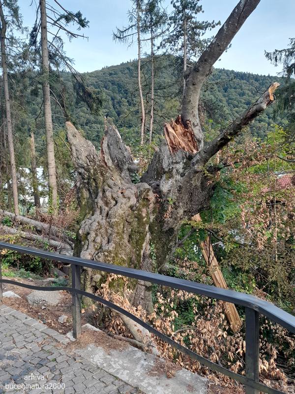 Batranul fag de pe aleea Nifon, fag care apare in vederile vechi, a avut si el de suferit de pe urma vijeliei.
